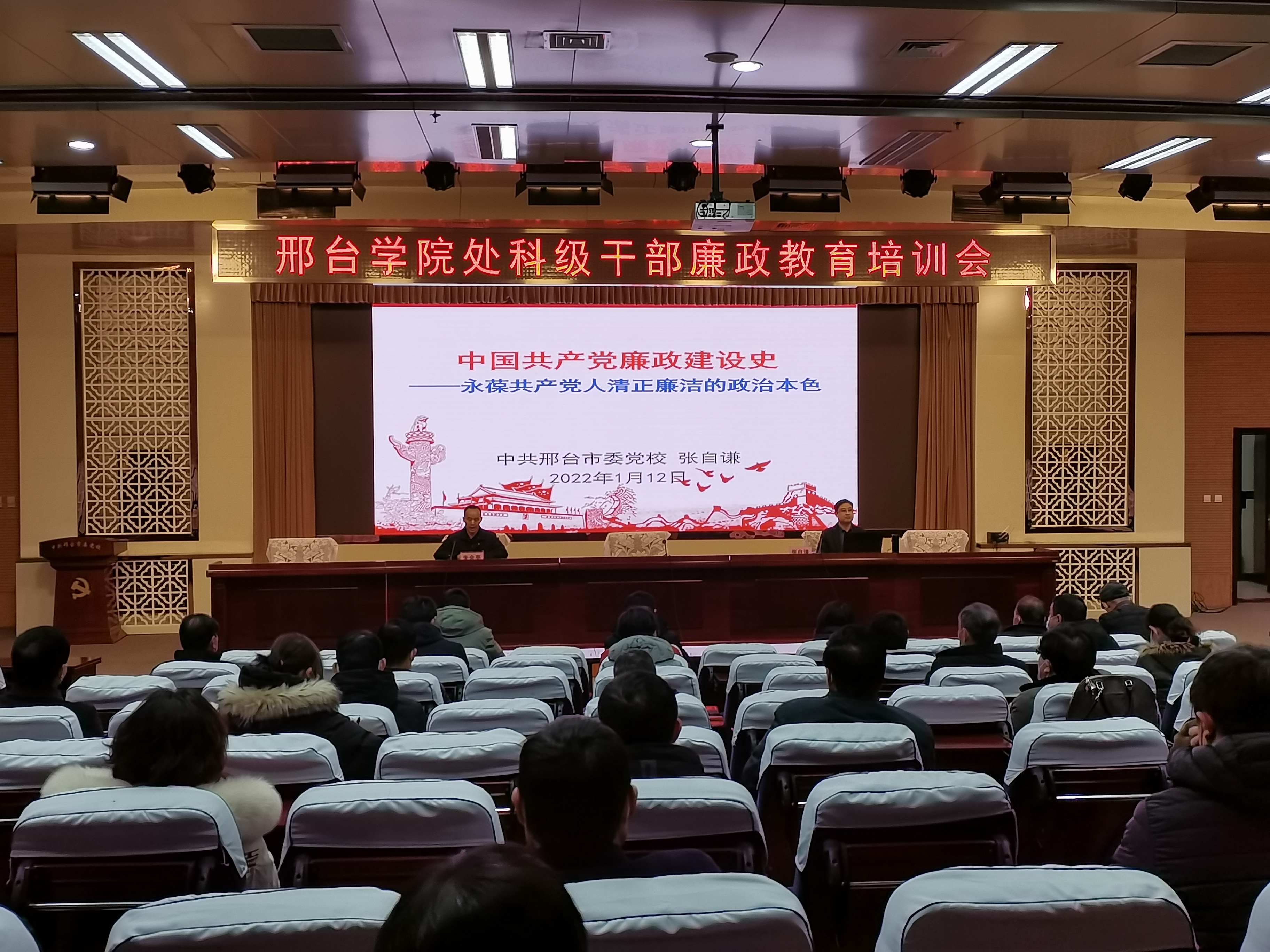 为推进我校党风廉政和反腐工作,强化党员干部的廉洁自律意识,营造风清气正的政治生态,根据学校党委安排,1月12日上午,我校赴邢台市委党校开展了党风廉政教育培训活动。校党委副书记朱金亮主持培训会,党委办公室主任张九波、组织部长吴远远、学校新任处级和全体科级干部参加了培训。